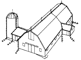 memproyeksikan titik tinggi bangunan , seperti puncak atap , cerobong