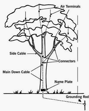 5. Penangkal petir menjaga terhadap kerusakan yang mungkin terjadi dengan cara jalur listrik . Penangkal petir yang dirancang dengan baik harus ditempatkan antara sirkuit listrik dan tanah di mana sirkuit memasuki gedung. Pohon-pohon besar membutuhkan perlindungan dari petir . Selain